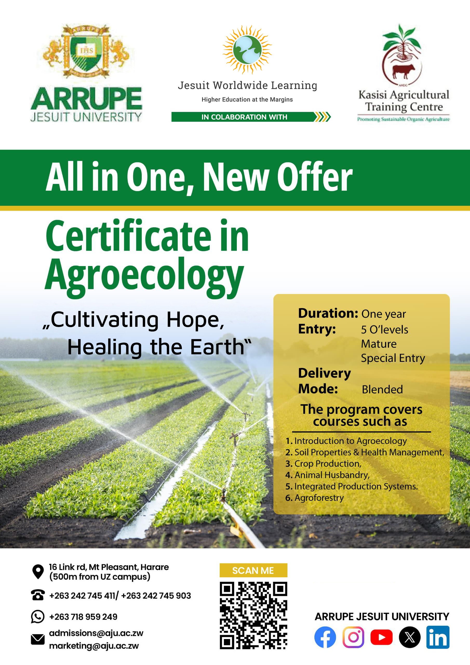 “Cultivating Hope, Healing the Earth” — A one-year blended certificate focusing on sustainable and organic farming systems... The program is designed for students with 5 O'levels or mature/special entry and covers vital areas like soil health, crop production, animal husbandry, and agroforestry.